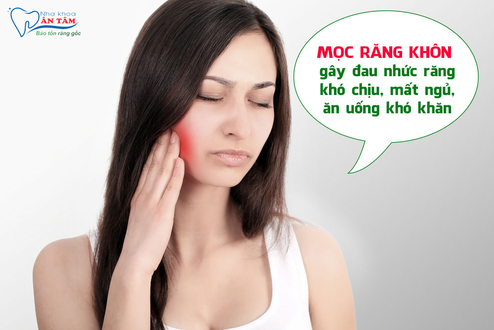 • Cảm giác đau nhức, khó chịu ở hàm, cảm giác này thường kéo dài vài ngày hoặc hơn, nguyên nhân là do răng khôn đẩy vào nướu.