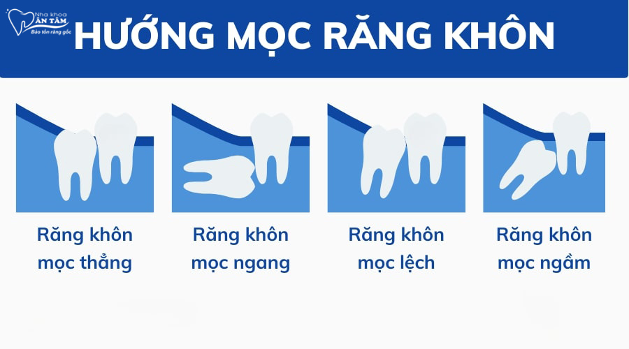 Vì là chiếc răng mọc sau cùng trên cung hàm nên răng khôn mọc có thể mọc theo nhiều hướng khác nhau. Cụ thể: