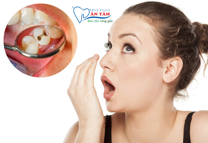 • Gây ra hôi miệng: sâu răng khiến cho răng bị nứt, vỡ tạo ra khe hở, trong quá trình ăn uống thức ăn tích tụ. Đây là môi trường thuận lợi cho vi khuẩn phát triển dẫn đến tình trạng hôi miệng.